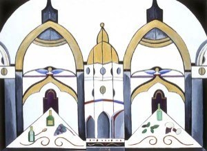 The central focus of the Magical Realism series paintings are the patterned mass of architectural designs based on the Italian regions of Umbria and Tuscany as well as Budapest and Prague.